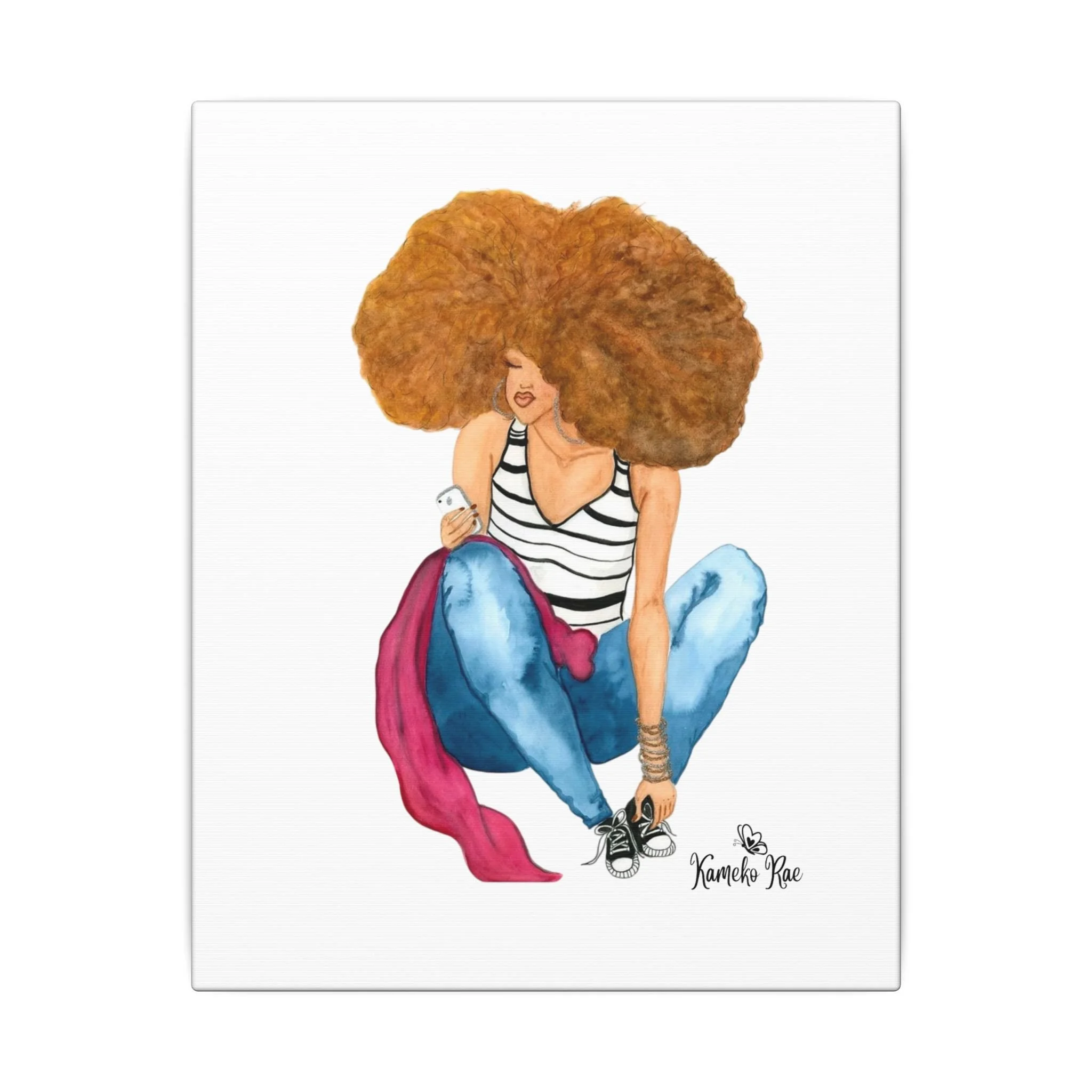 Bright, and elegant — this matte stretched canvas captures a sassy-inspired silhouette in rich, hand-drawn patterns. The clean white background keeps the composition modern and breathable. Hung in a living room, hallway, or studio, the print brings a feeling of warm evenings, vibrant music, and confident steps. It’s for people who collect stories in art: those who appreciate hand-illustrated detail, cultural flair, and a piece that feels both lively and refined.