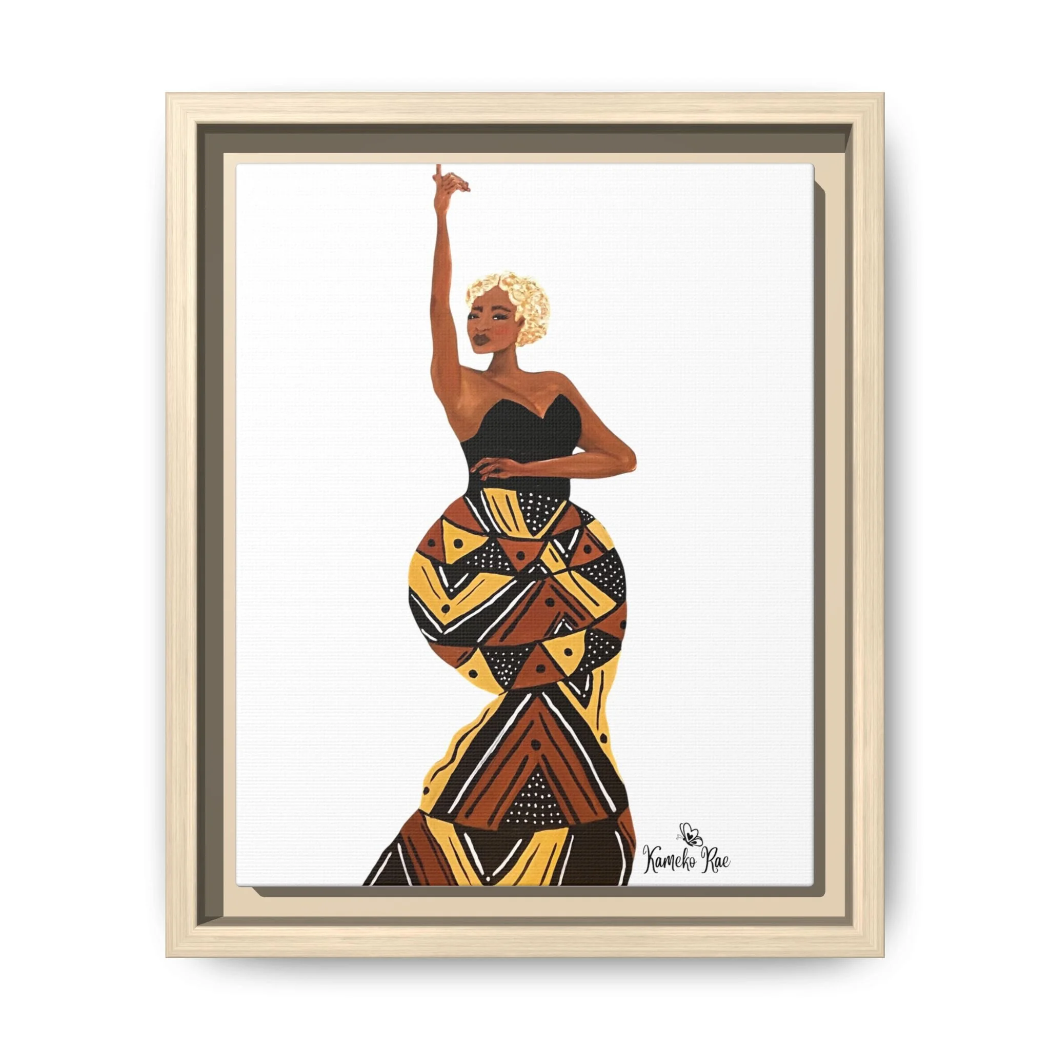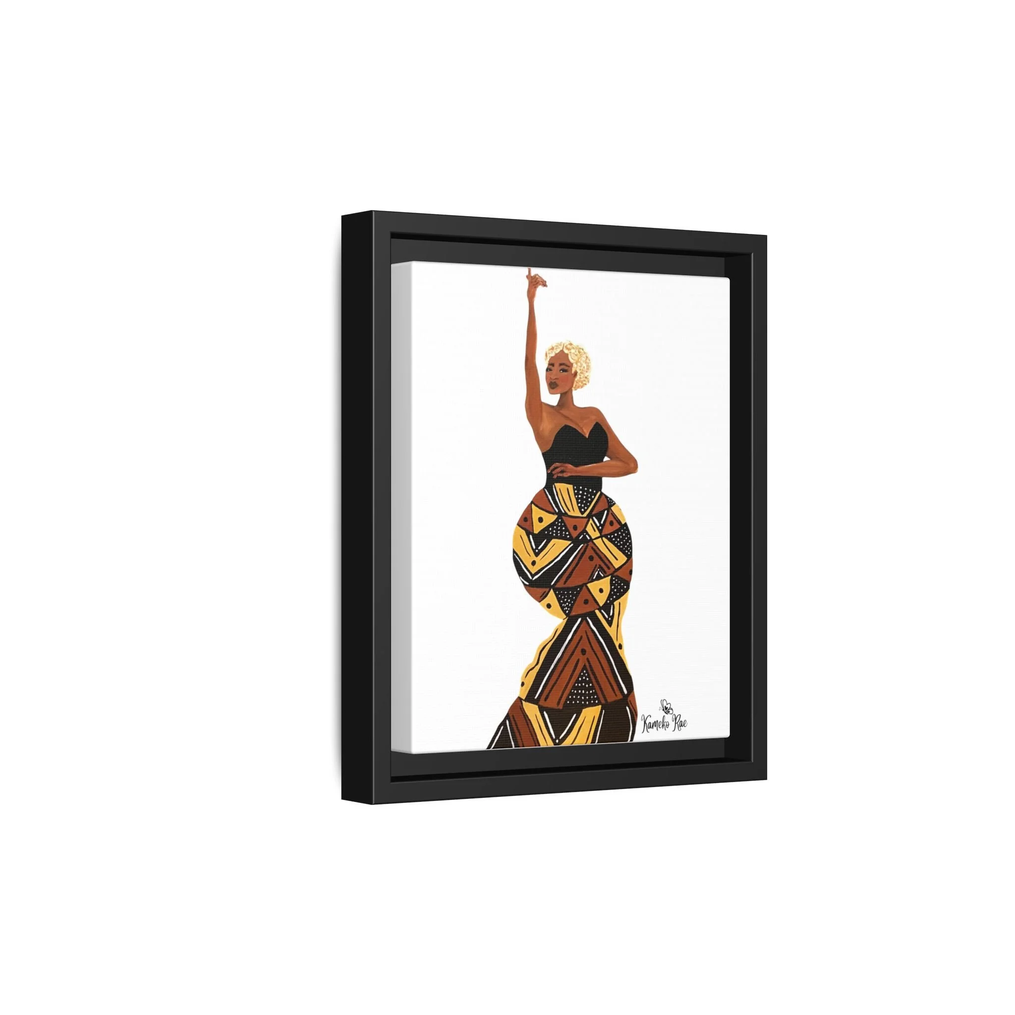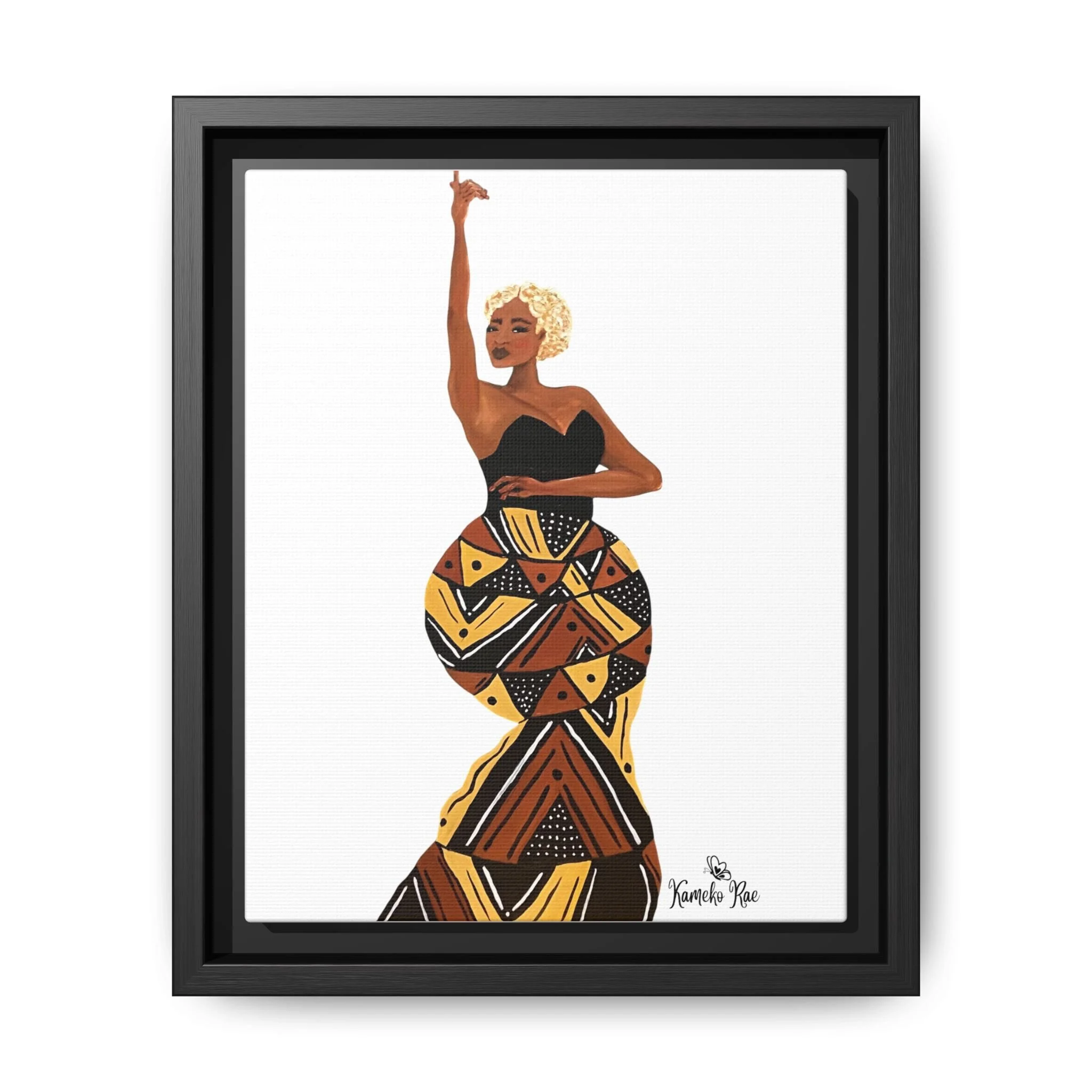Framed Matte Canvas Art — Afrocentric Lady in African Mudcloth Dress