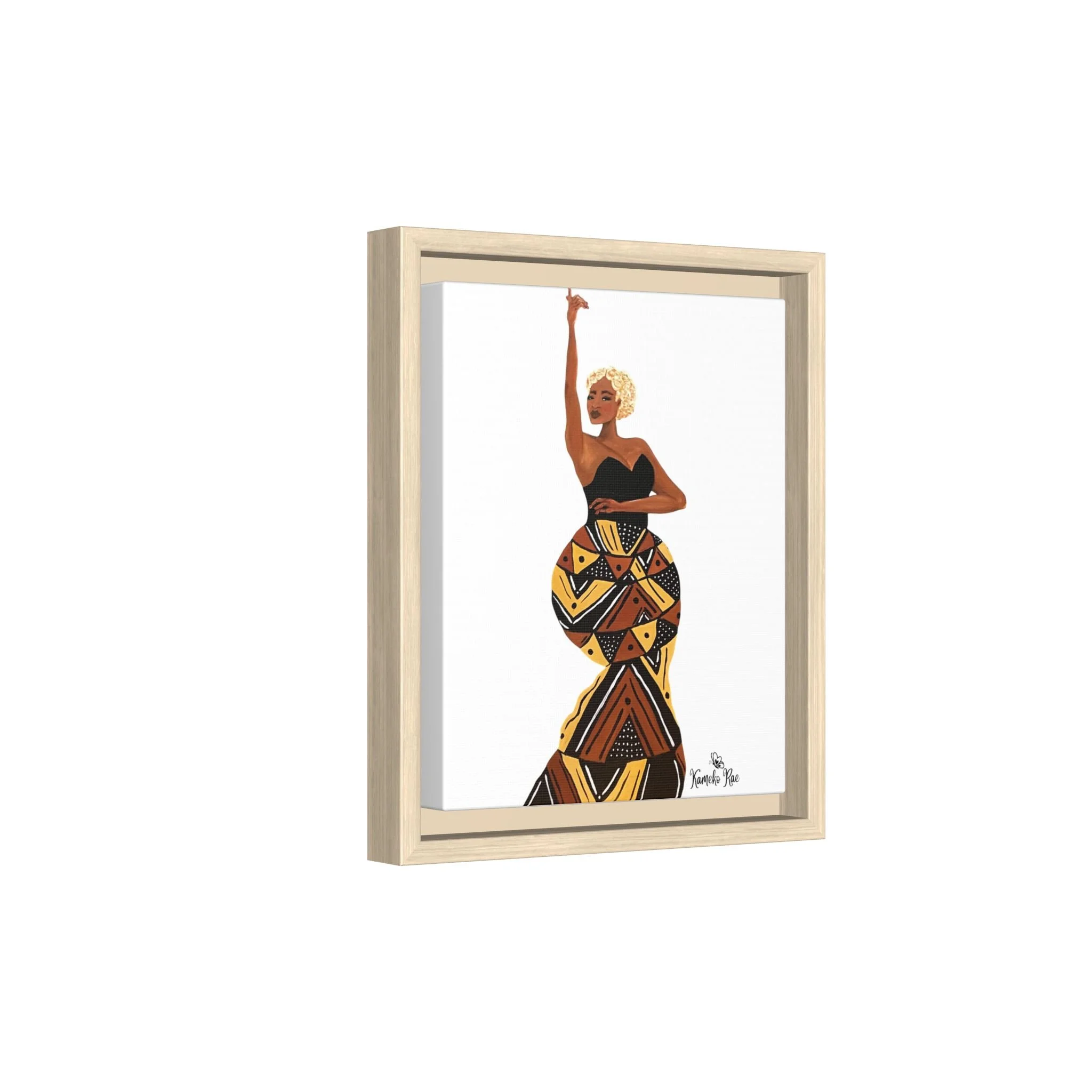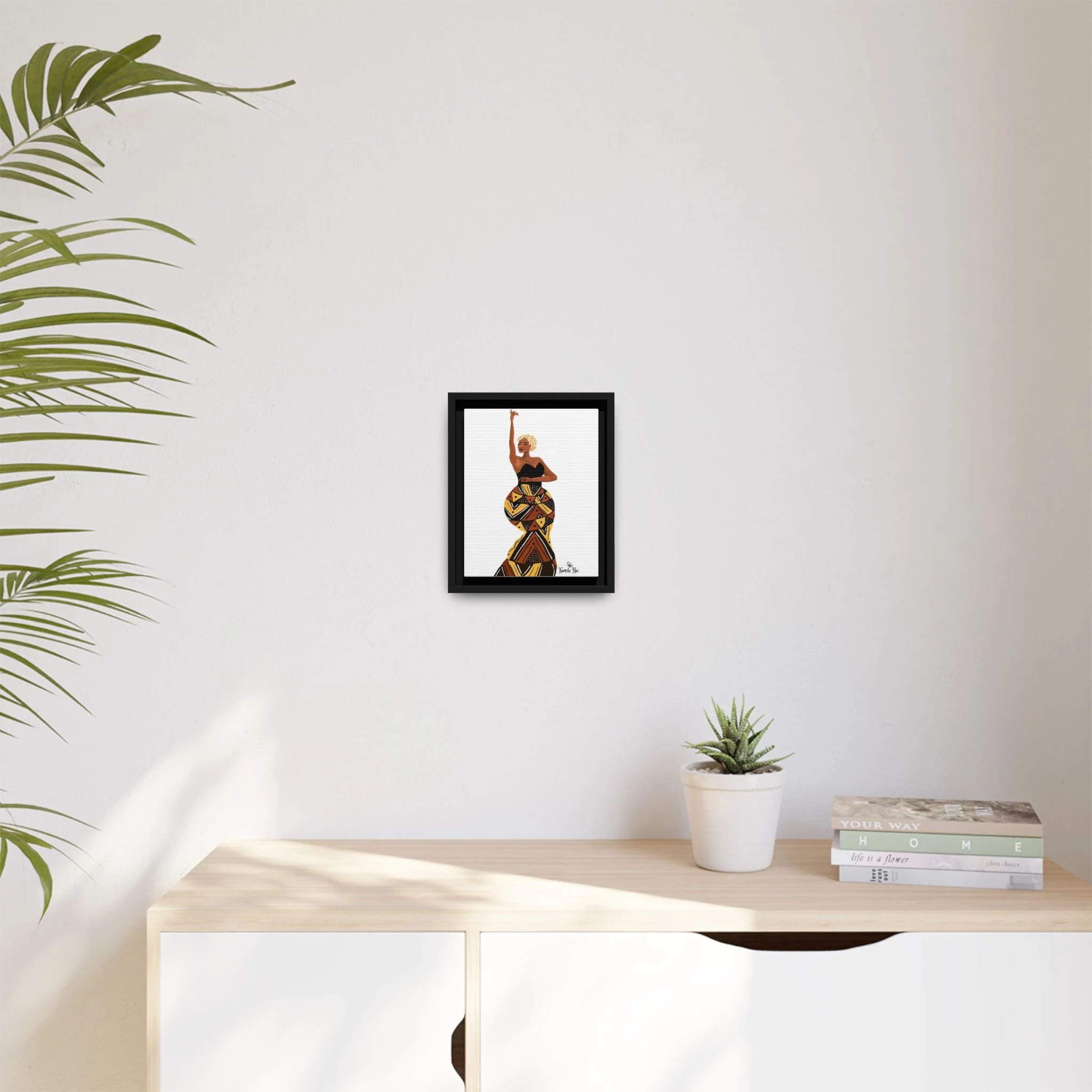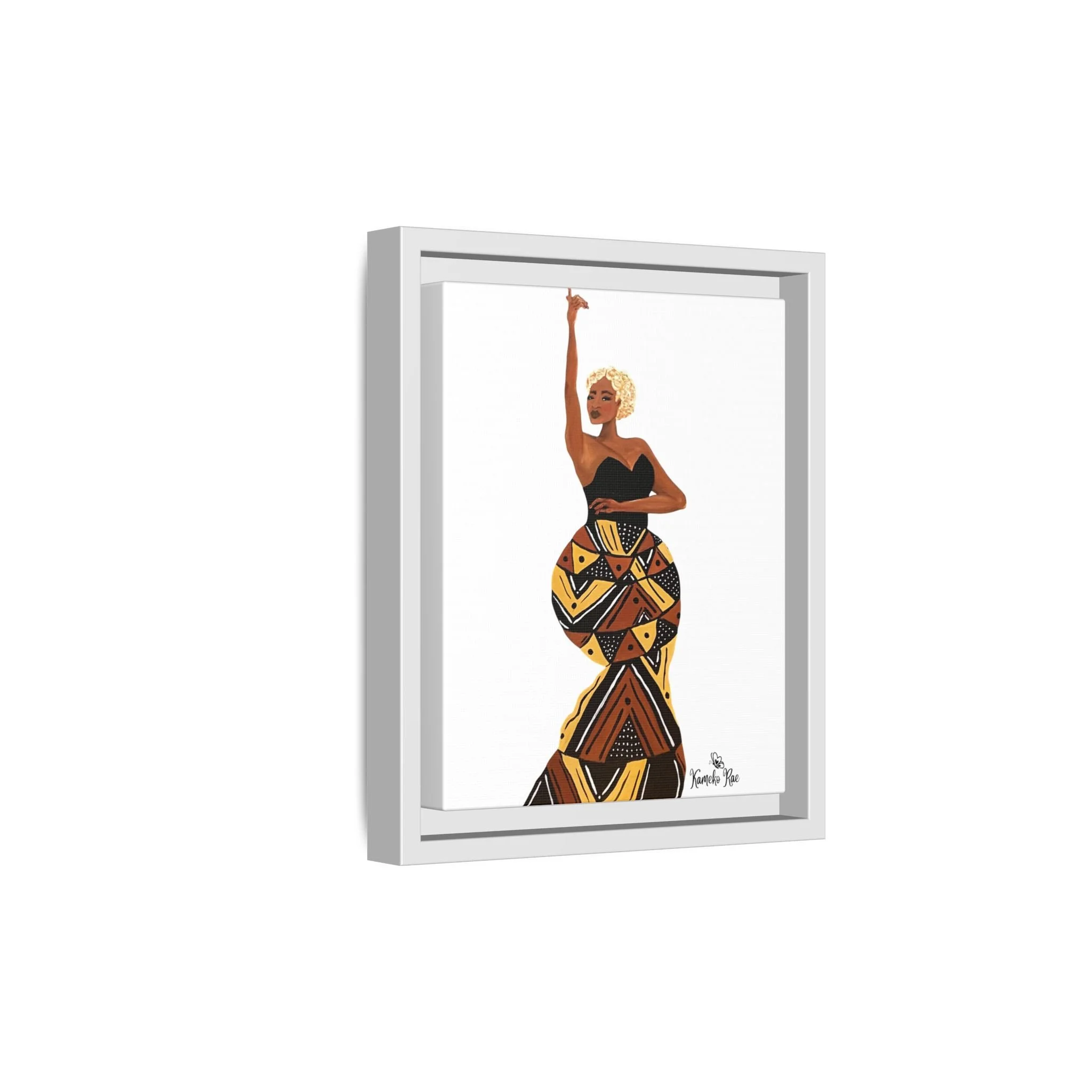 Framed Matte Canvas Art — Afrocentric Lady in African Mudcloth Dress