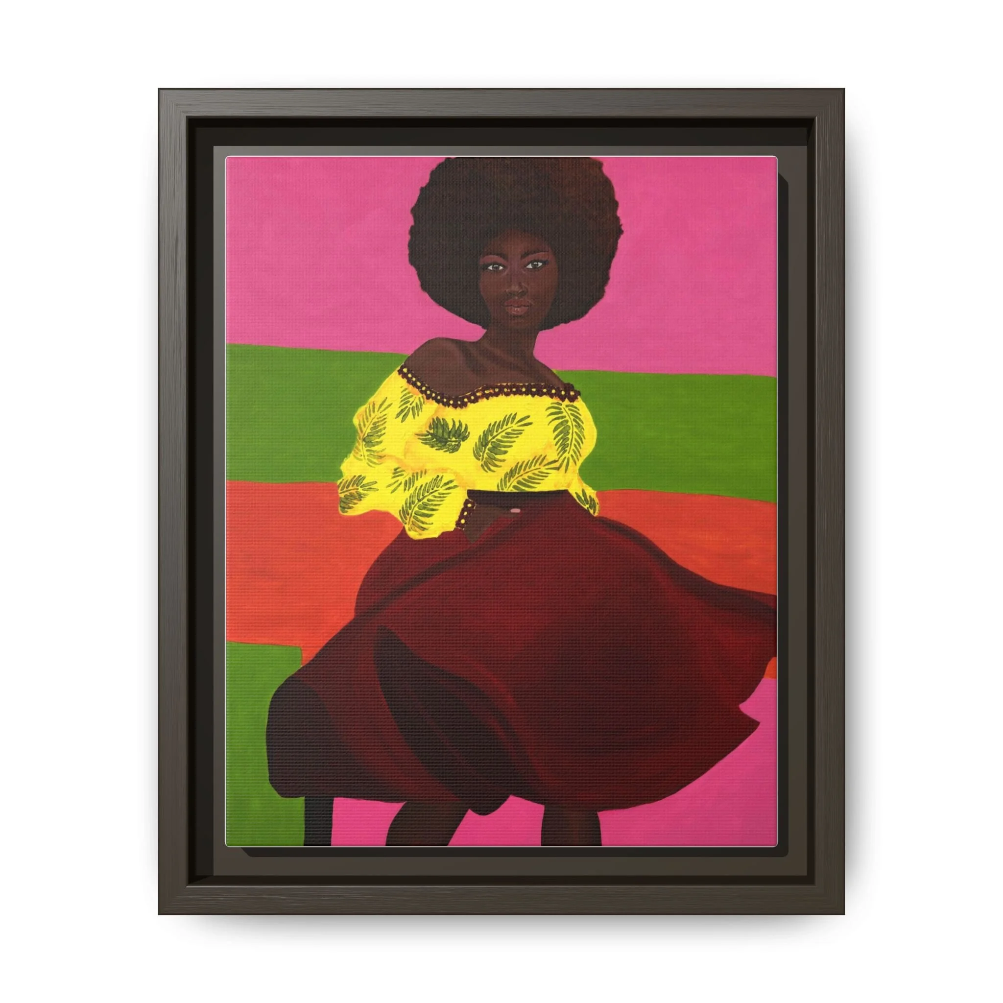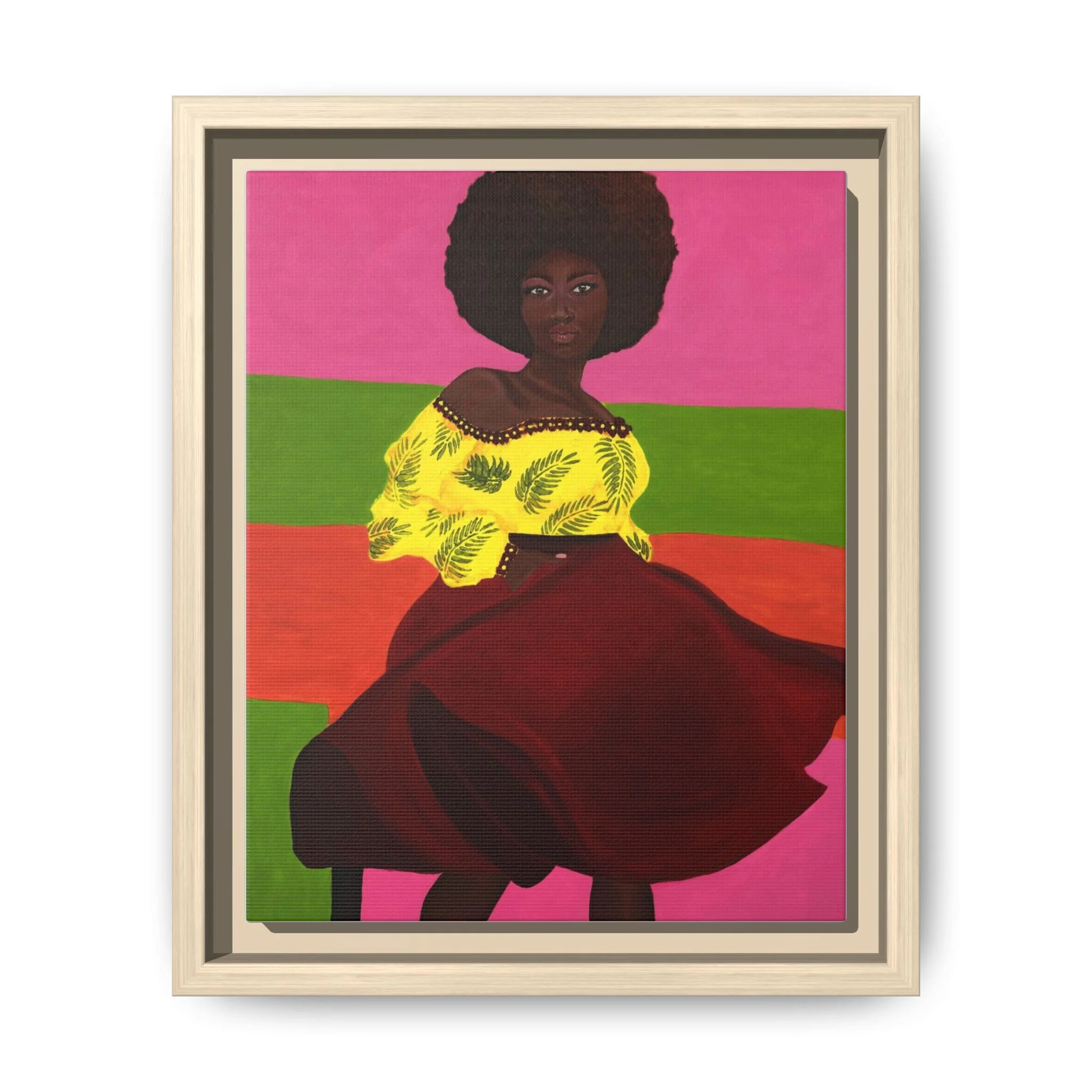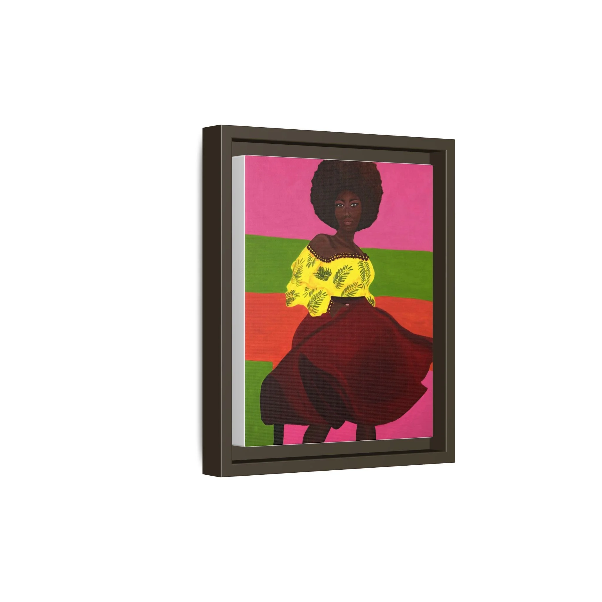 Framed Matte Canvas Art – Afrocentric Woman in Vibrant Pink, Green & Red