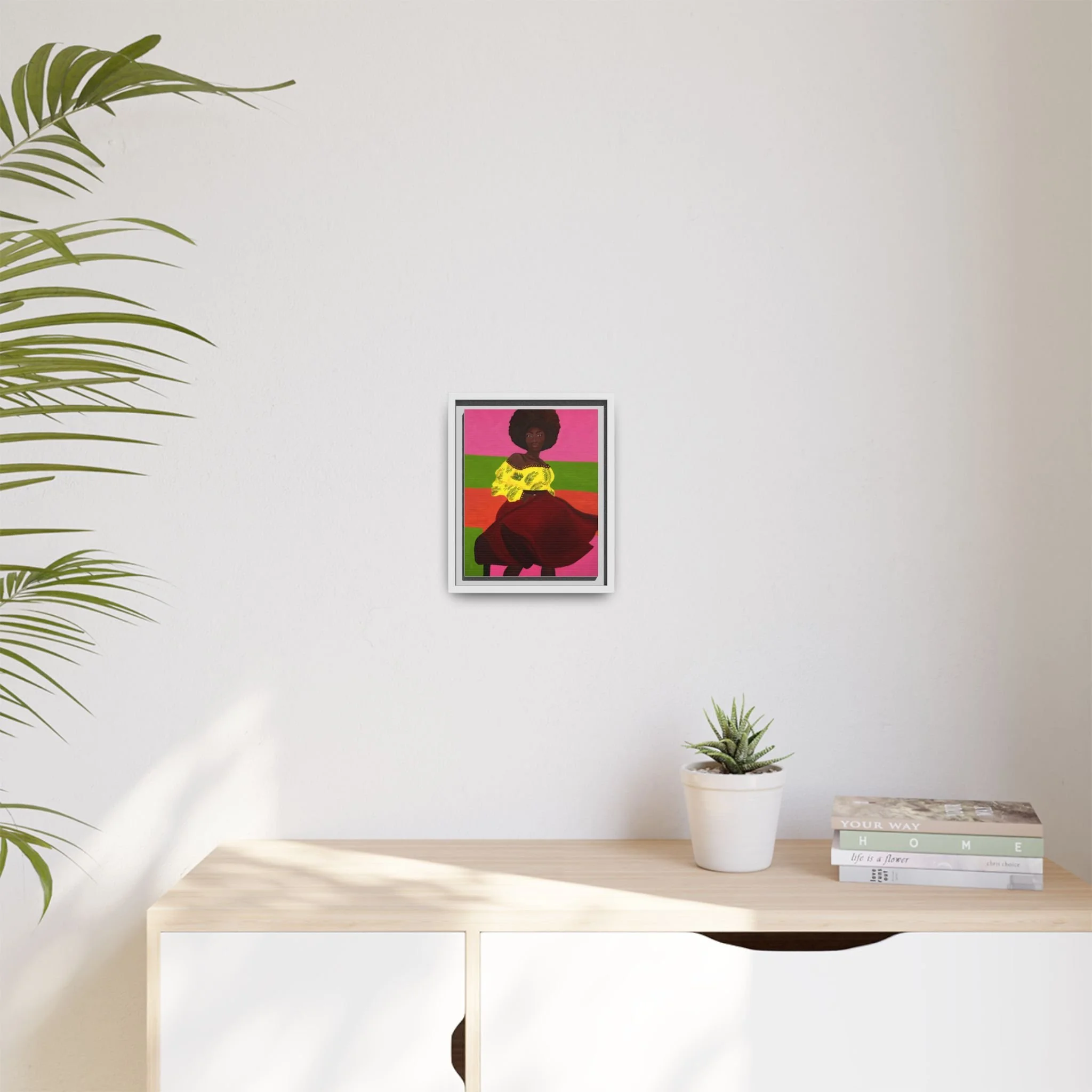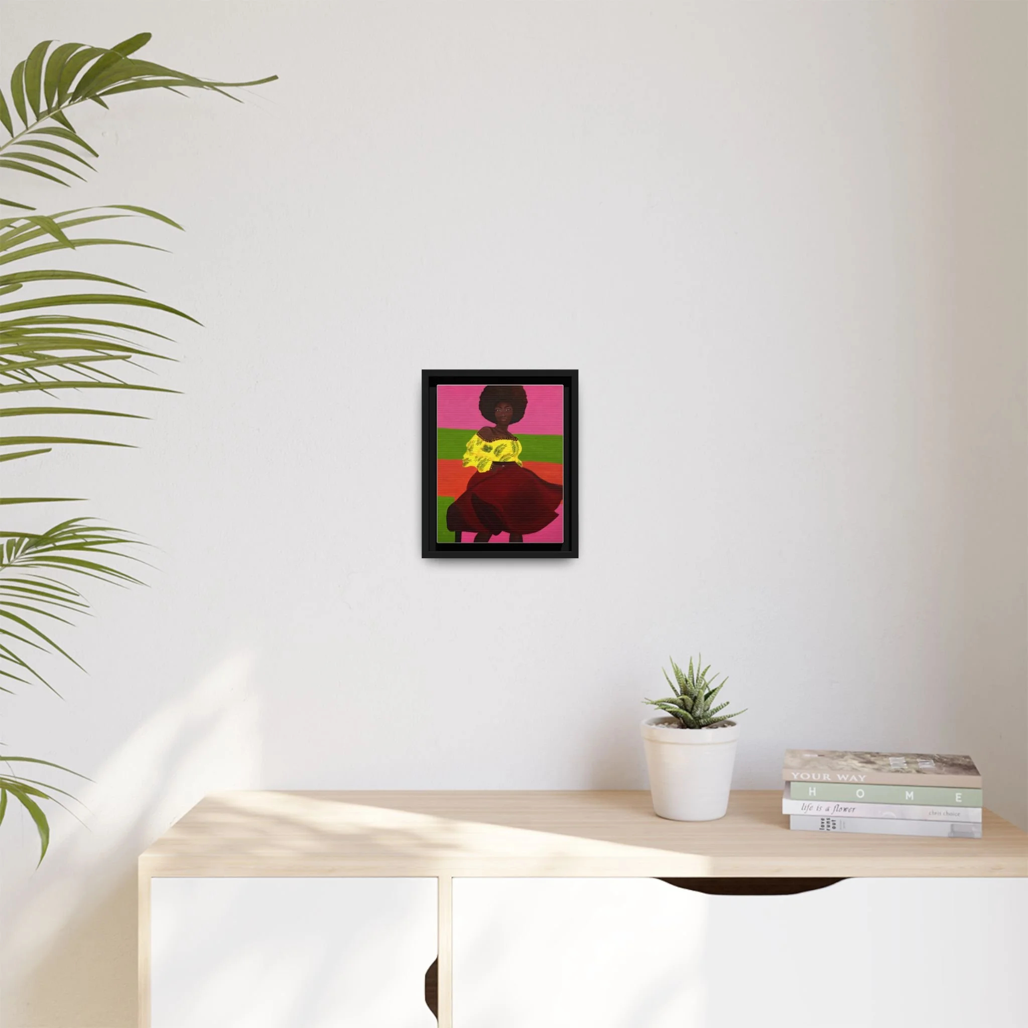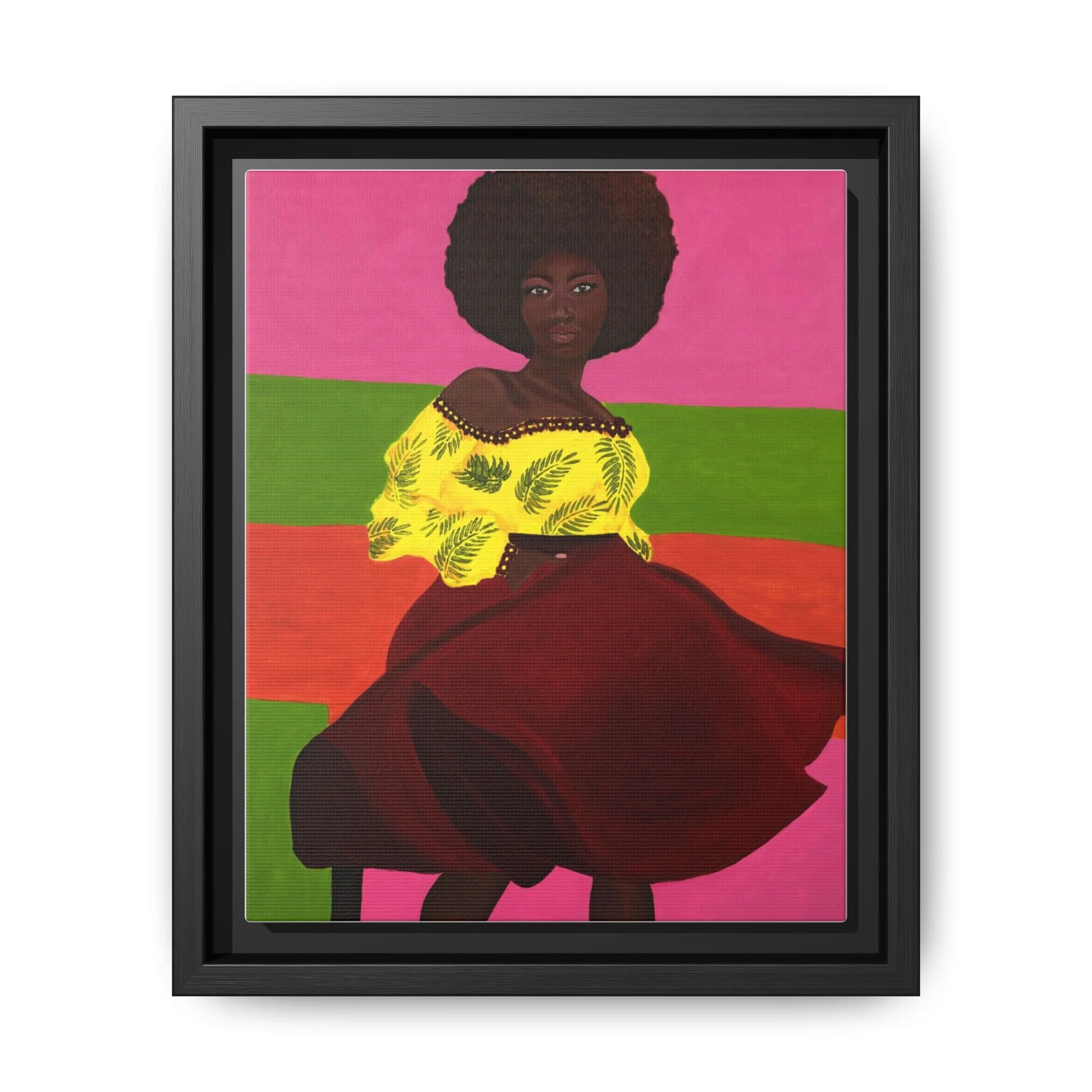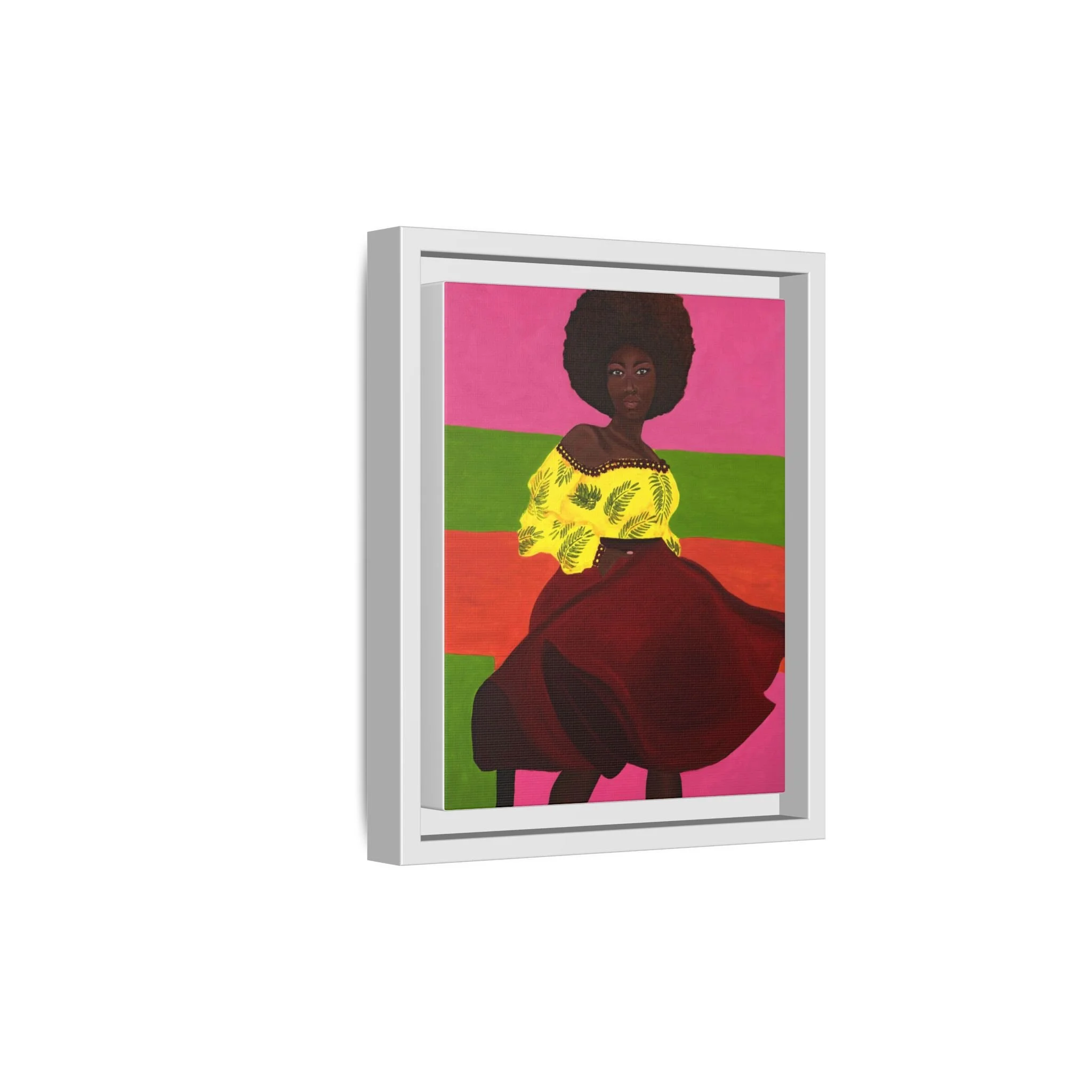 Framed Matte Canvas Art – Afrocentric Woman in Vibrant Pink, Green & Red