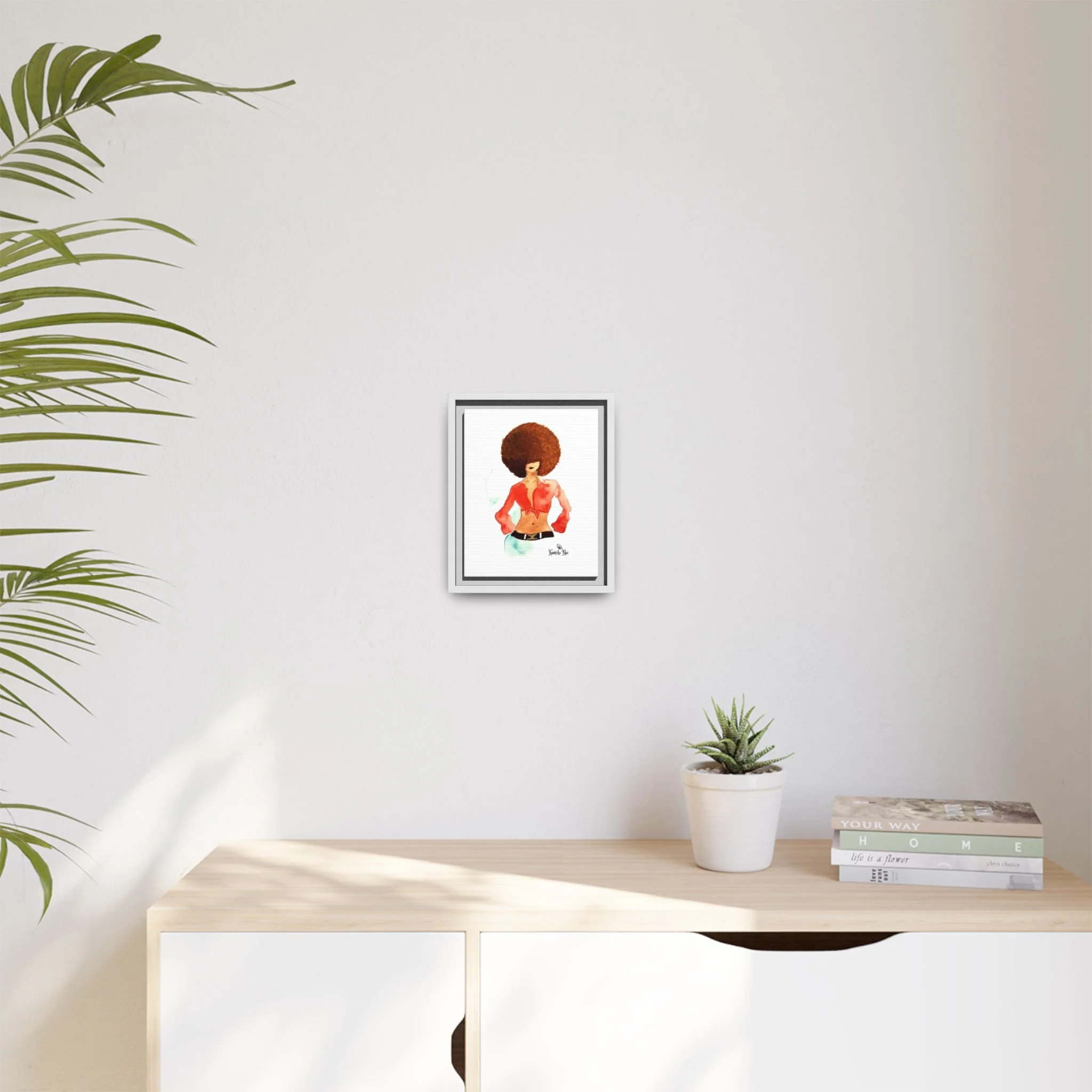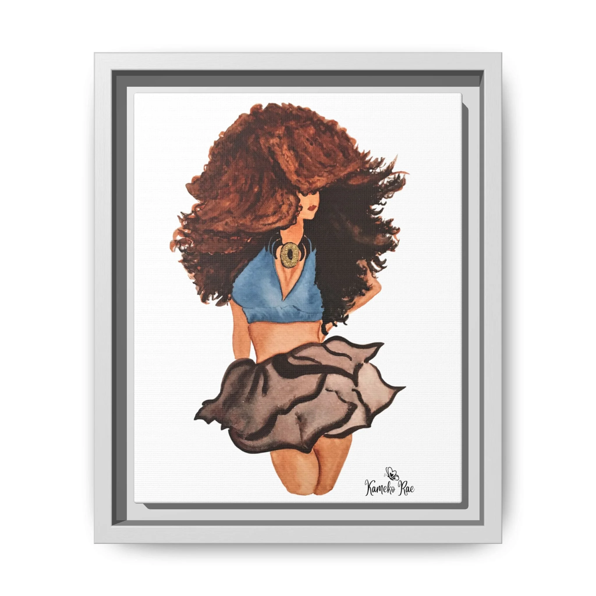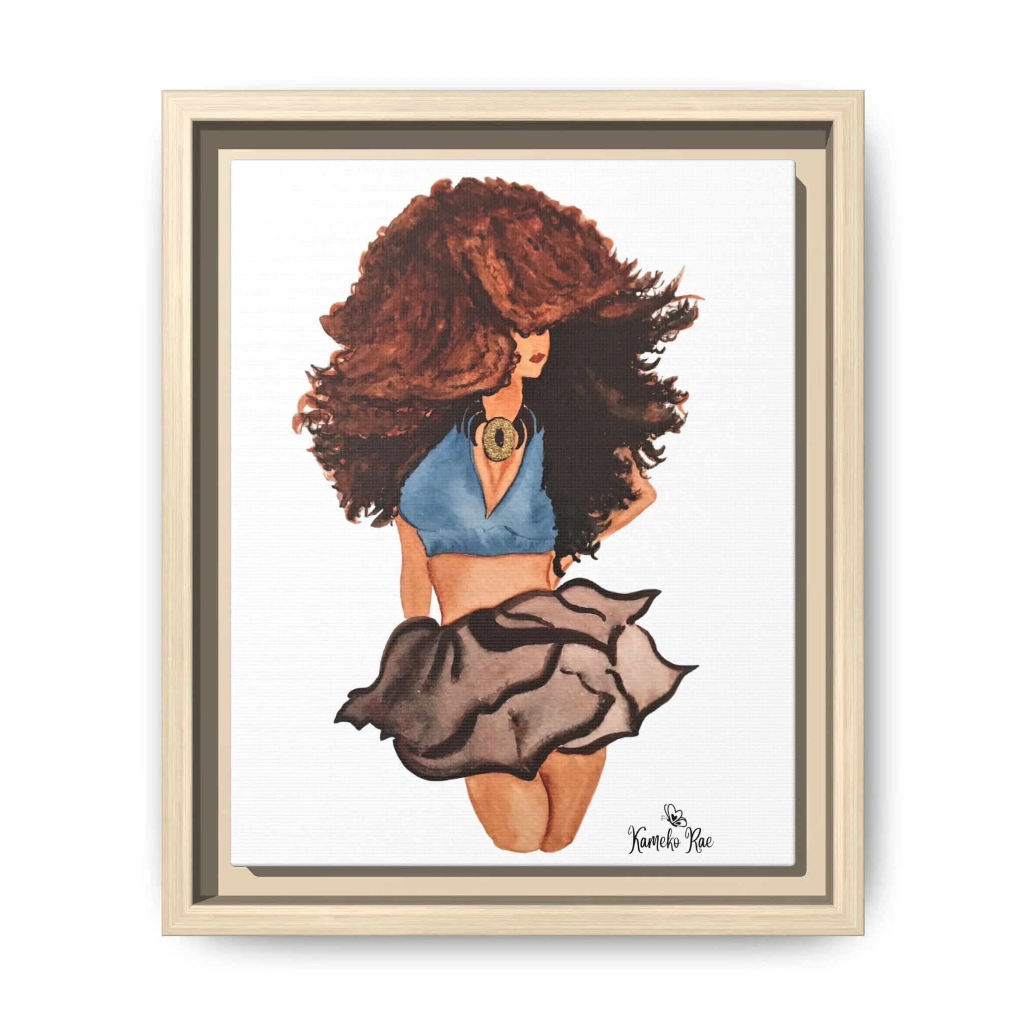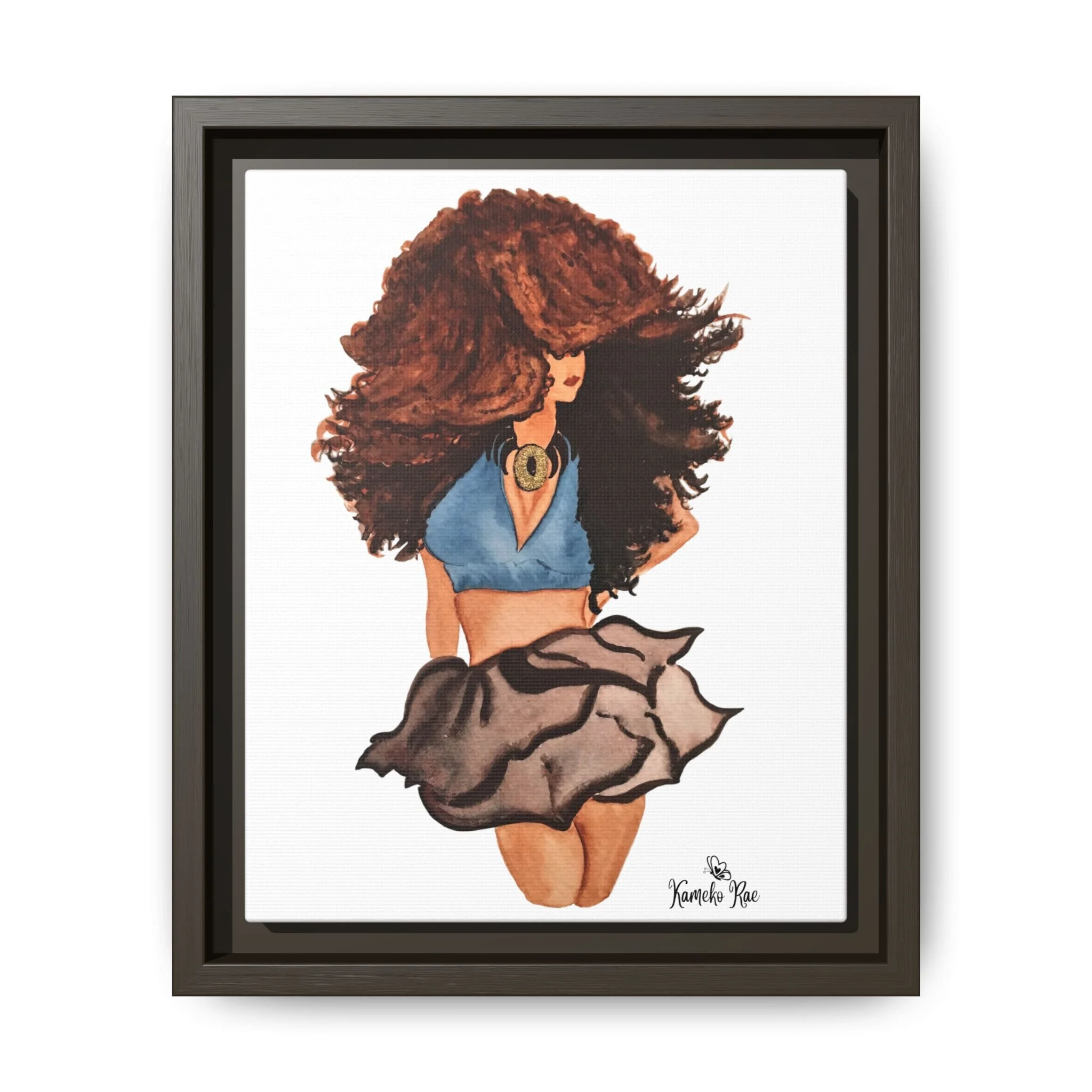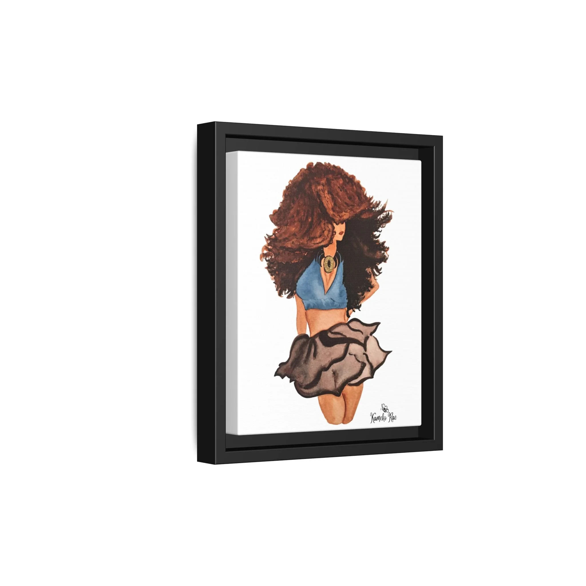 Framed Matte Canvas Art — Lady with Curly Hair