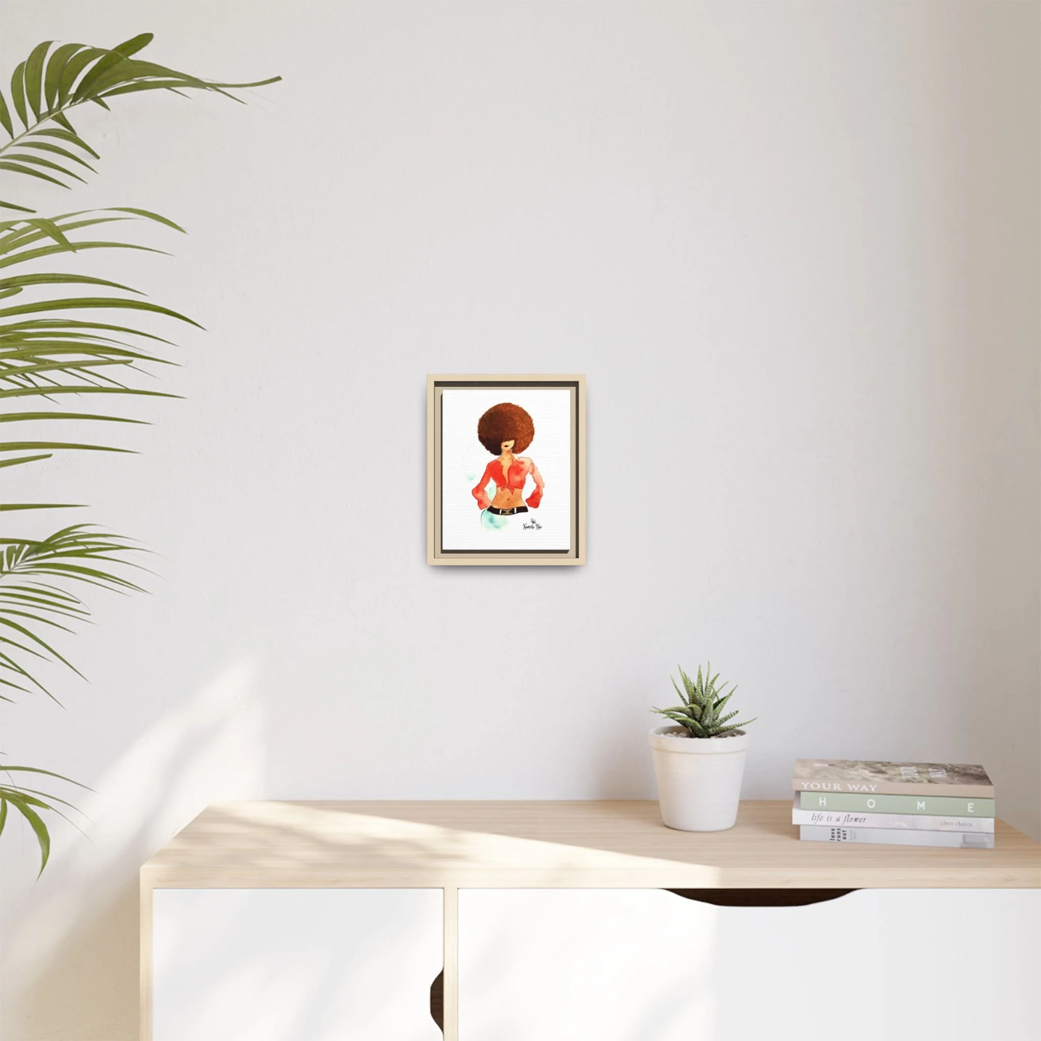A framed matte canvas print that brings bold, playful sophistication-inspired style into any room. Printed with UL-certified Greenguard Gold latex inks on a cotton-poly canvas composite and stretched over sustainably sourced pine, the piece delivers vivid, long-lasting color with a soft, museum-ready matte finish. Hang it in an entryway, living room, studio, or bedroom to anchor a space with personality and cultural flair. The lightweight pine frame and included sawtooth hardware make installation simple, while multiple size and orientation options let you choose the scale that suits your wall and workflow.