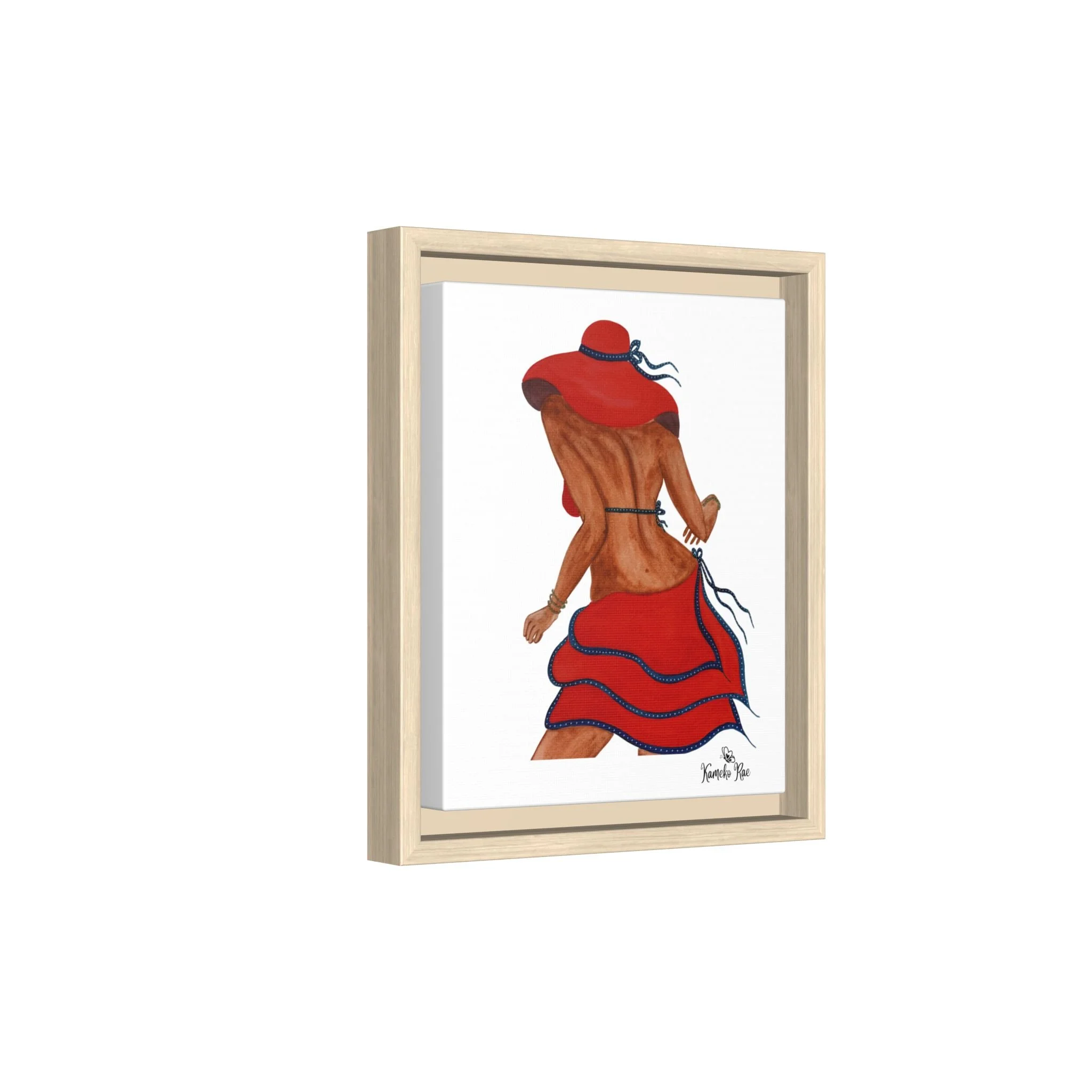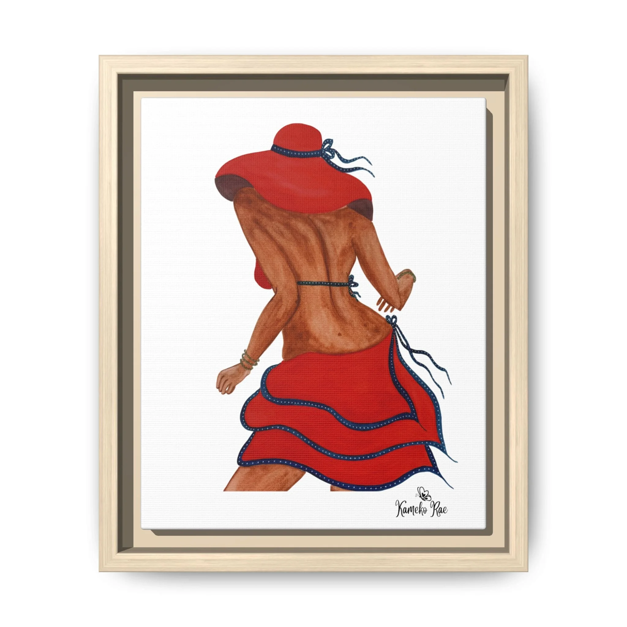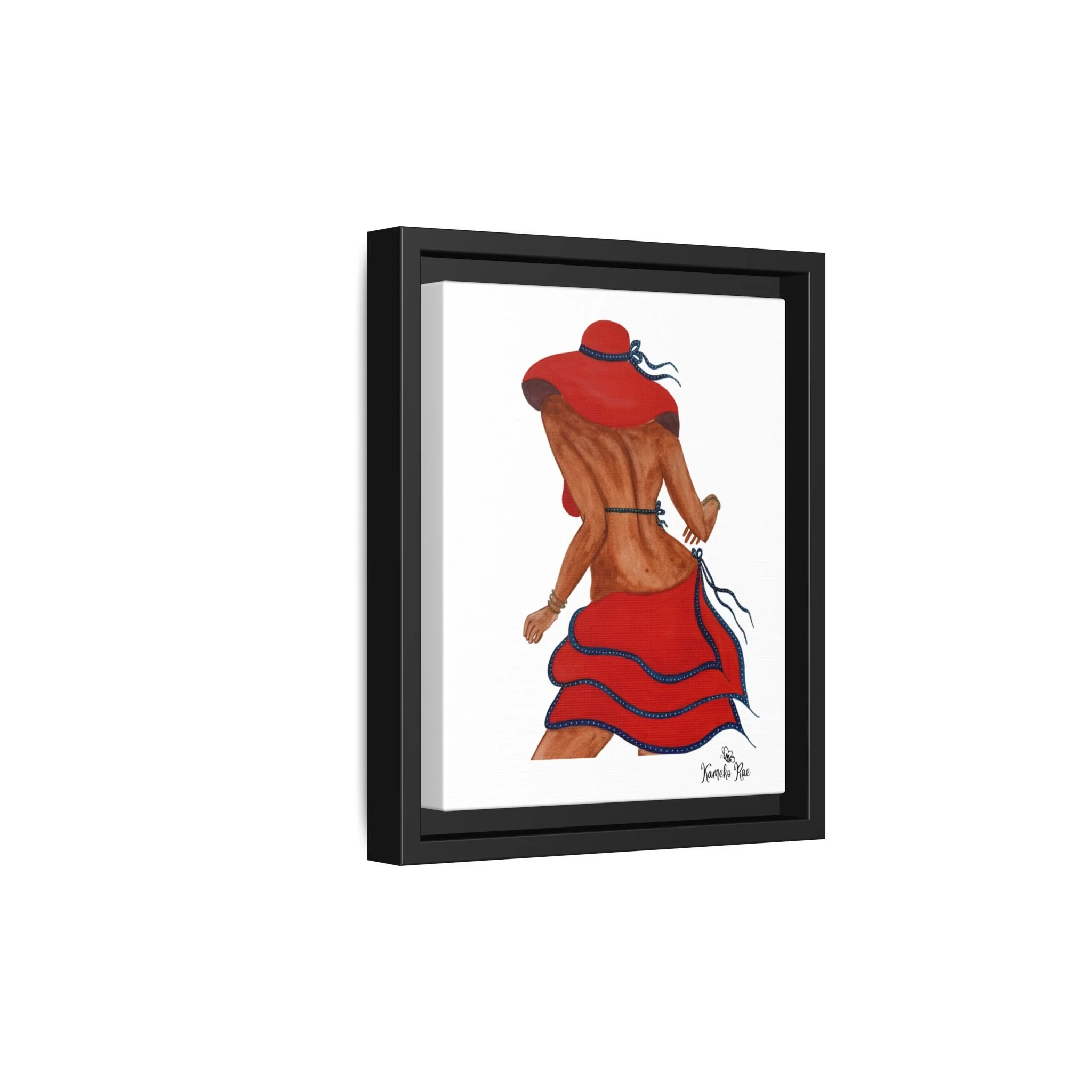 Framed Matte Canvas Art — Lady with Red Hat