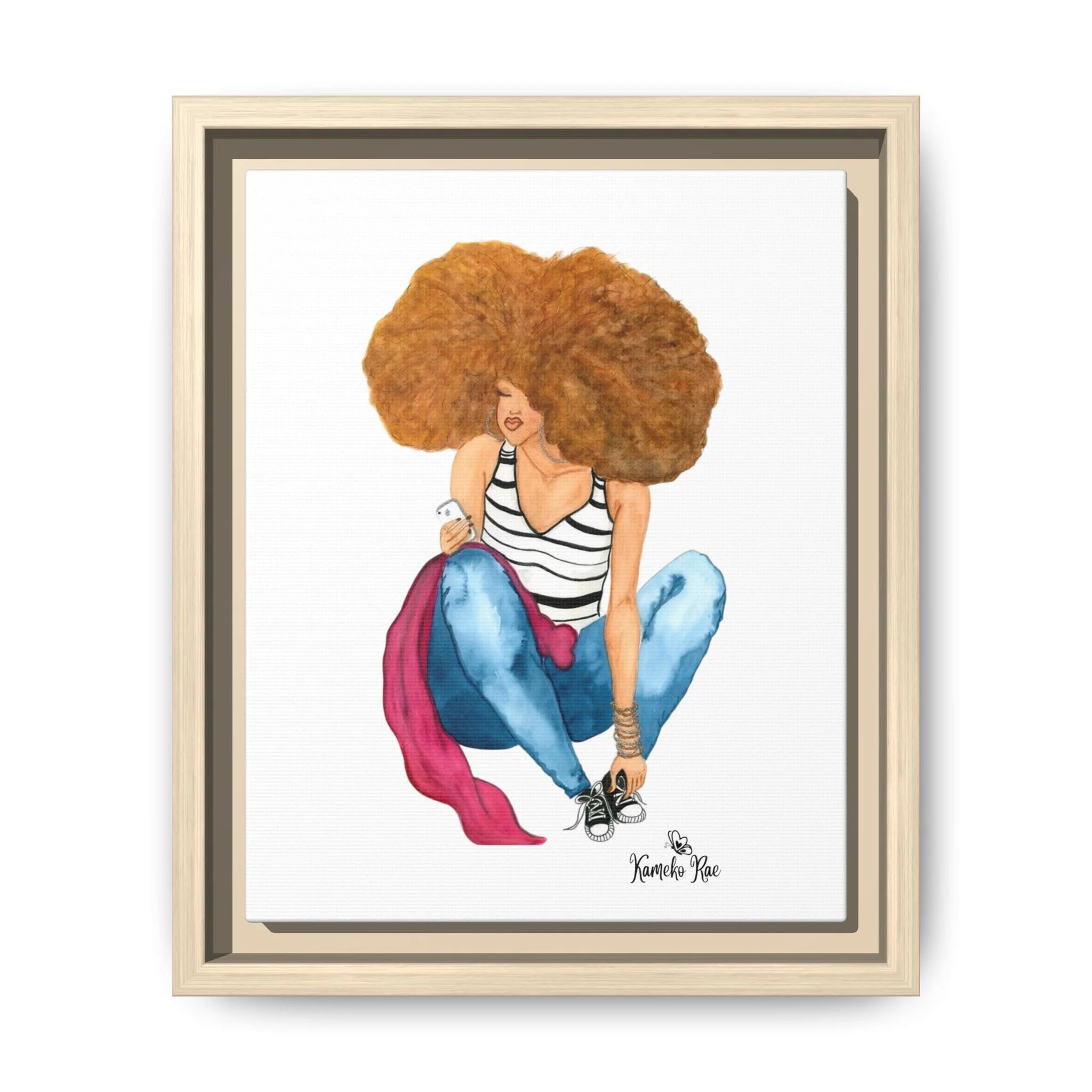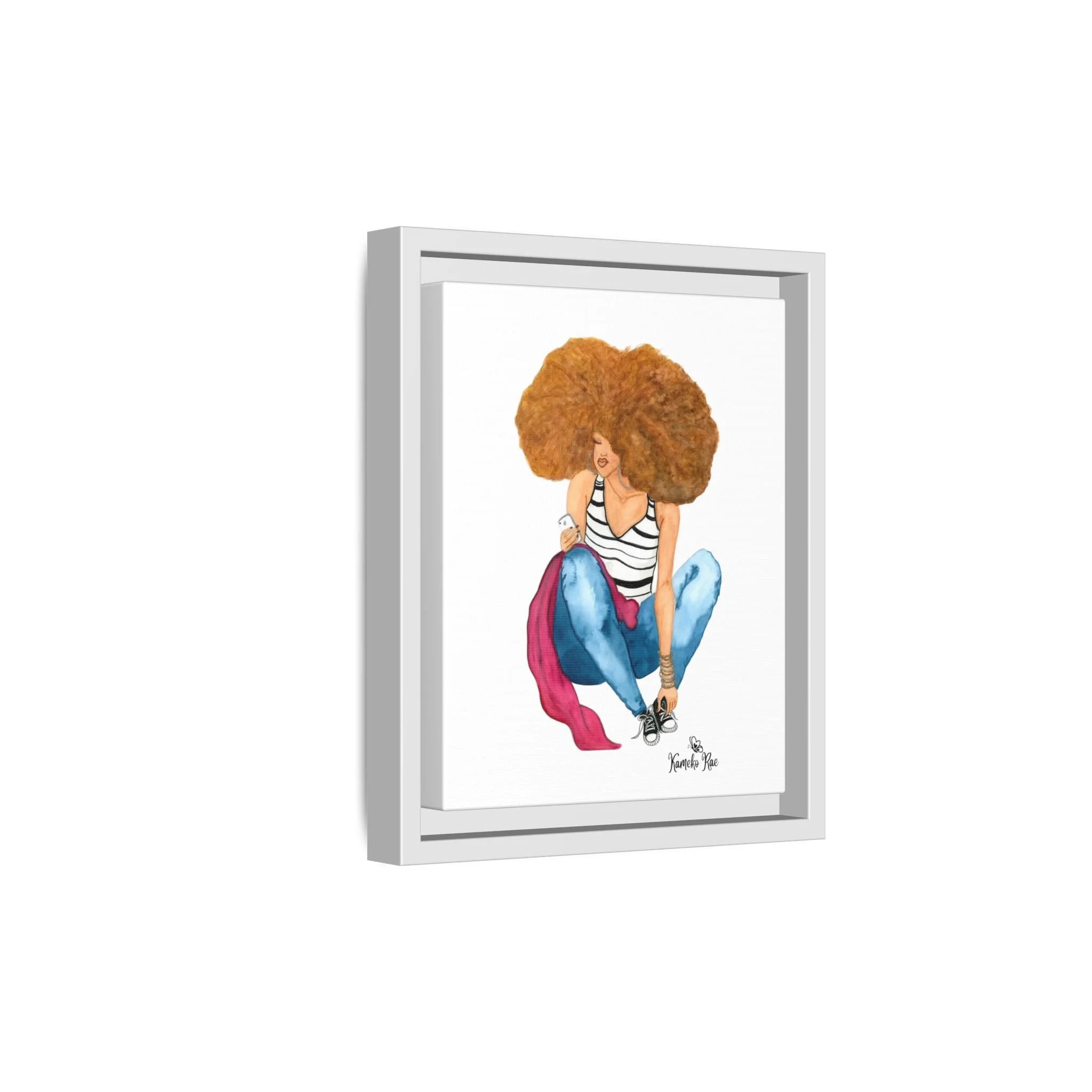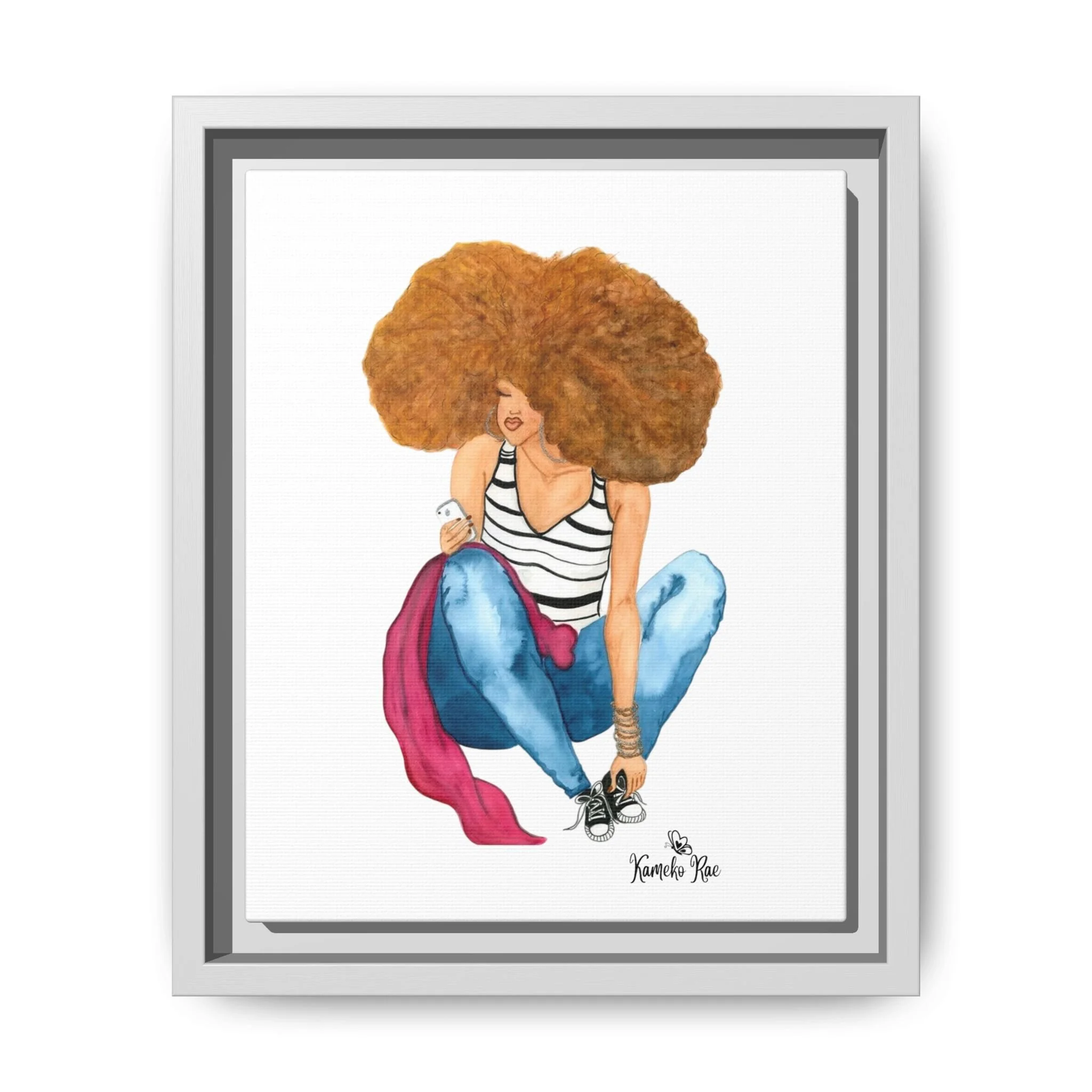 A framed matte canvas print that brings bold, playful sophistication-inspired style into any room. Printed with UL-certified Greenguard Gold latex inks on a cotton-poly canvas composite and stretched over sustainably sourced pine, the piece delivers vivid, long-lasting color with a soft, museum-ready matte finish. Hang it in an entryway, living room, studio, or bedroom to anchor a space with personality and cultural flair. The lightweight pine frame and included sawtooth hardware make installation simple, while multiple size and orientation options let you choose the scale that suits your wall and workflow.
