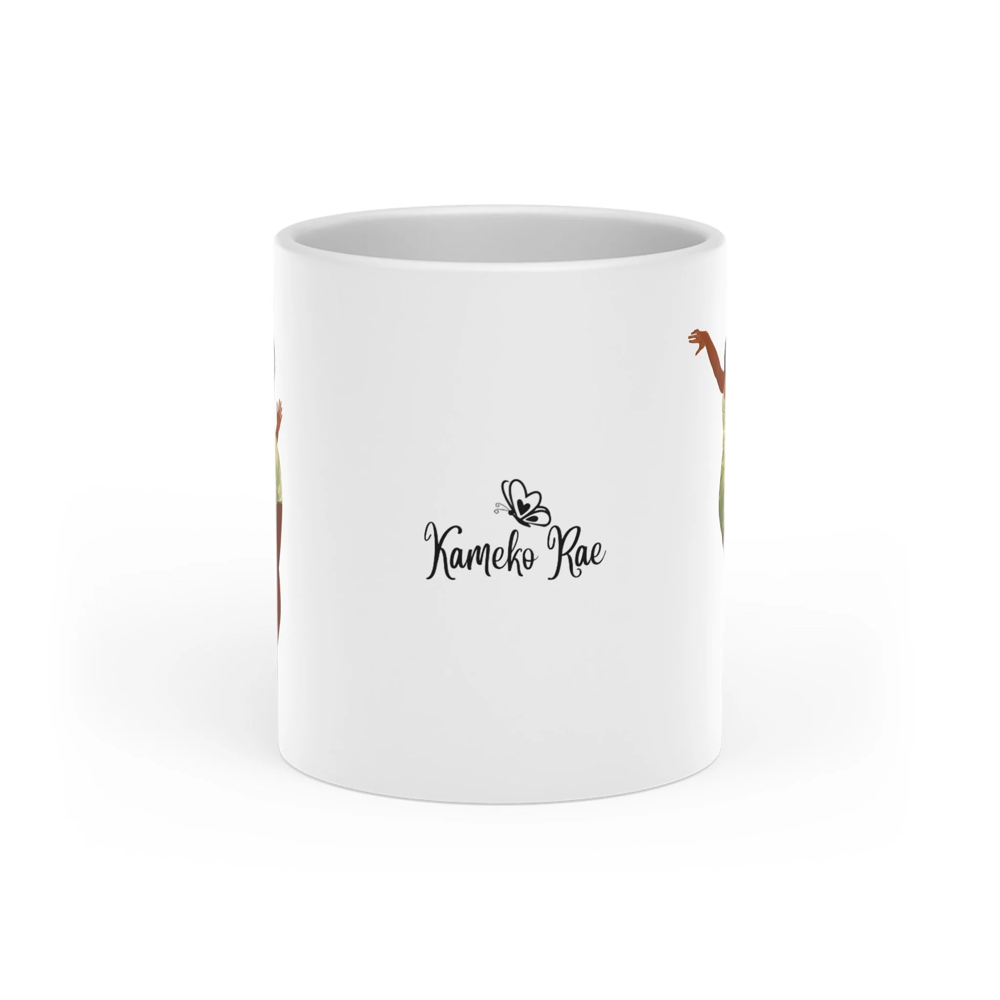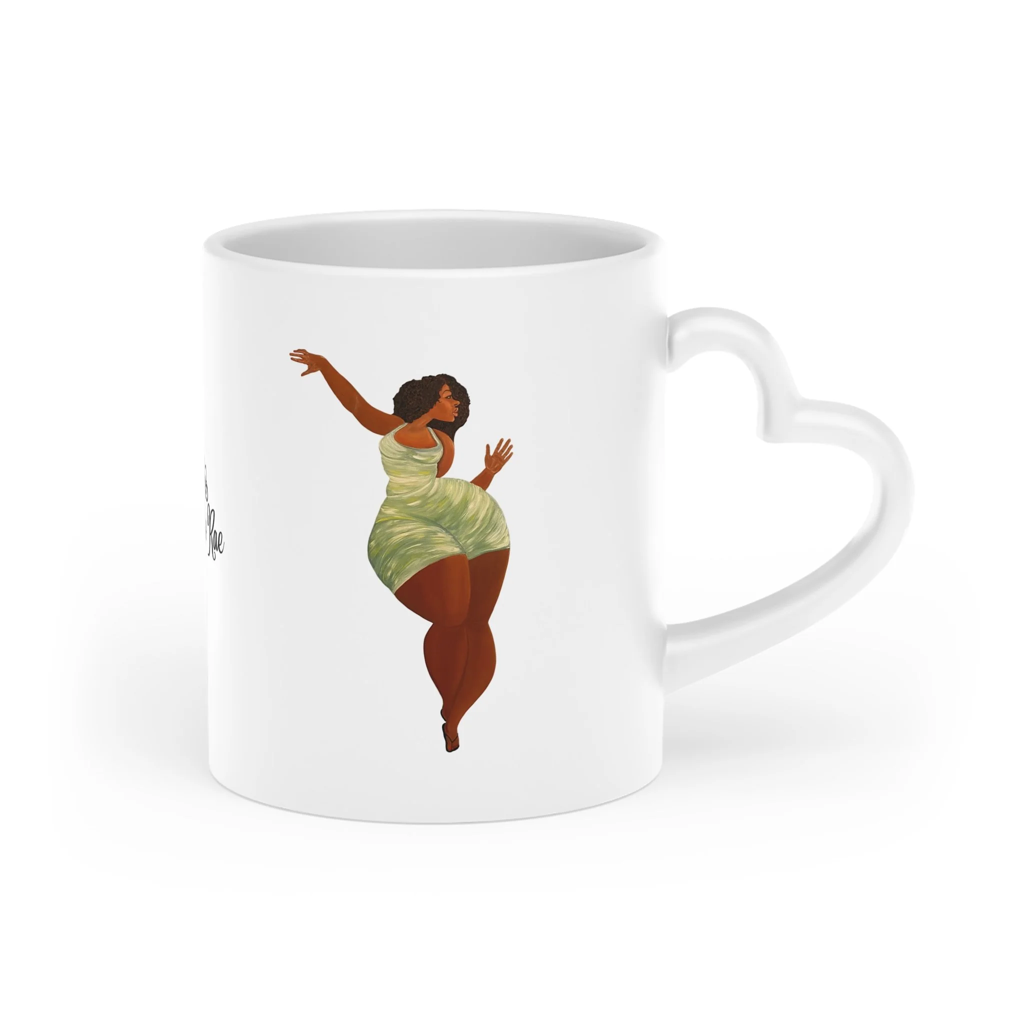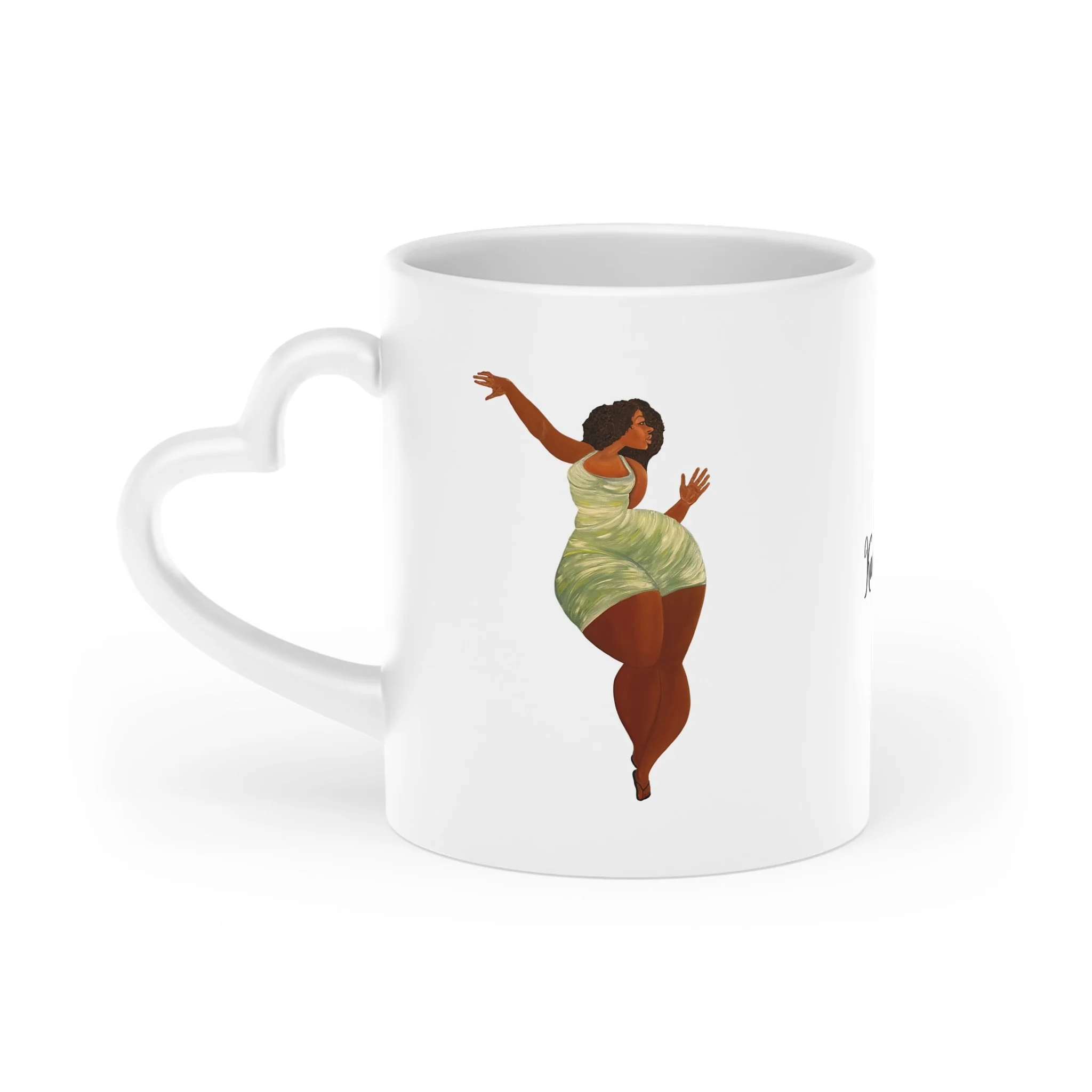 Red Summer Hat Heart-Shaped Mug — Cute Red Dress Girl Coffee Mug with 'Kameko Rae' Logo