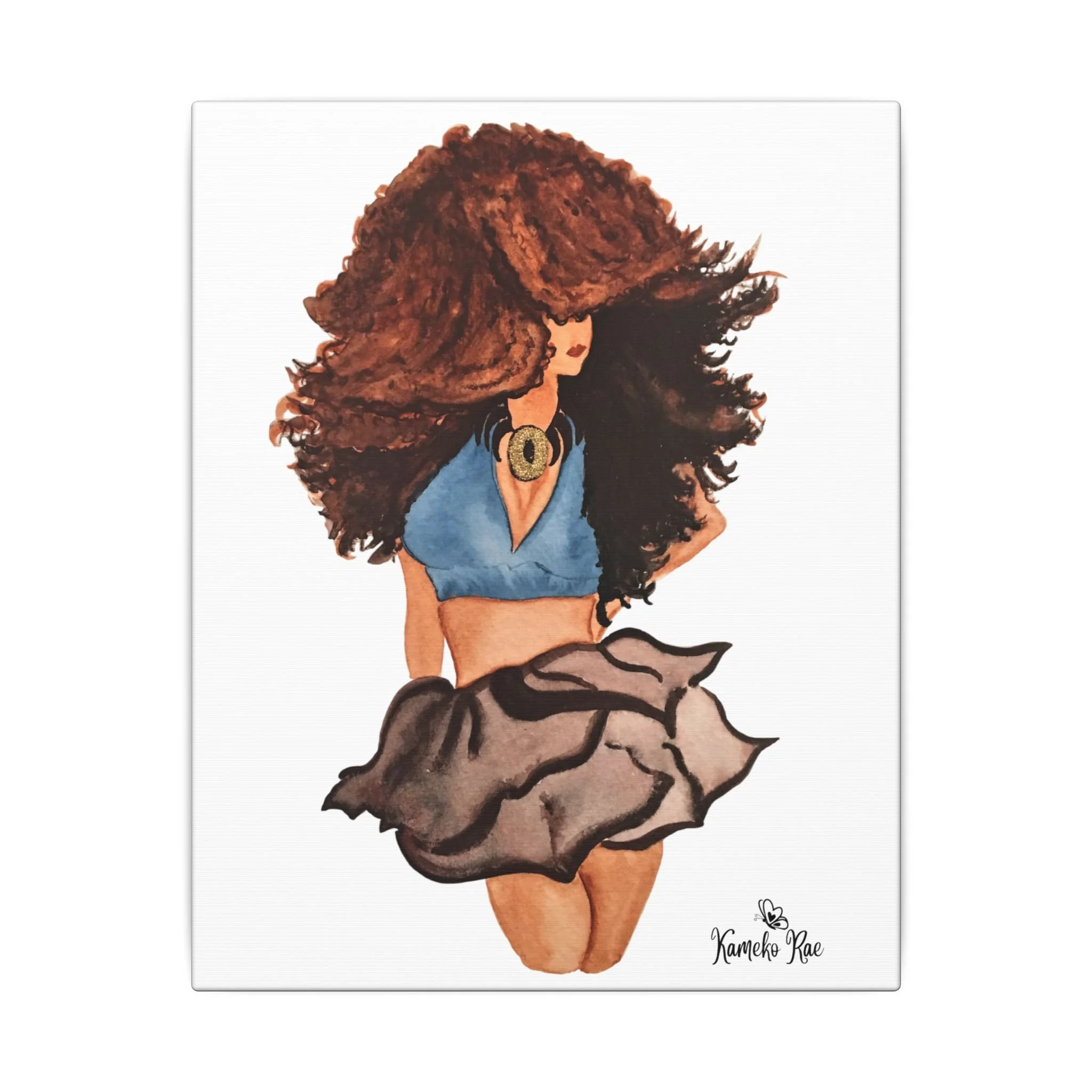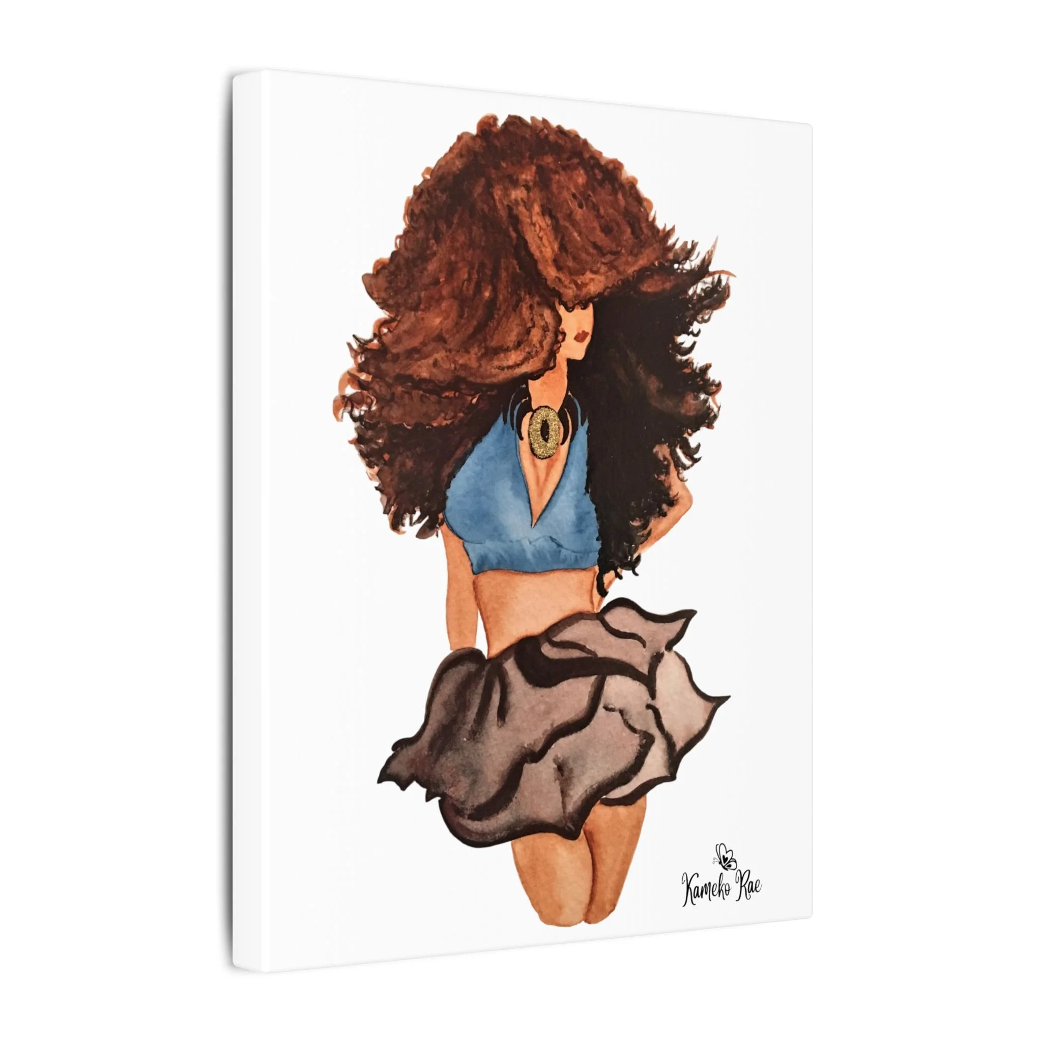 Bright, elegant, and full of movement — this matte stretched canvas captures a sassy-inspired silhouette in rich, hand-drawn patterns. The figure’s flowing dress and raised arms create a sense of rhythm and celebration, while the clean white background keeps the composition modern and breathable. Hung in a living room, hallway, or studio, the print brings a feeling of warm evenings, vibrant music, and confident steps. It’s for people who collect stories in art: those who appreciate hand-illustrated detail, cultural flair, and a piece that feels both lively and refined.